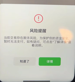 十五、微信支付时弹出风险提醒,什么原因造成的?怎么解决?